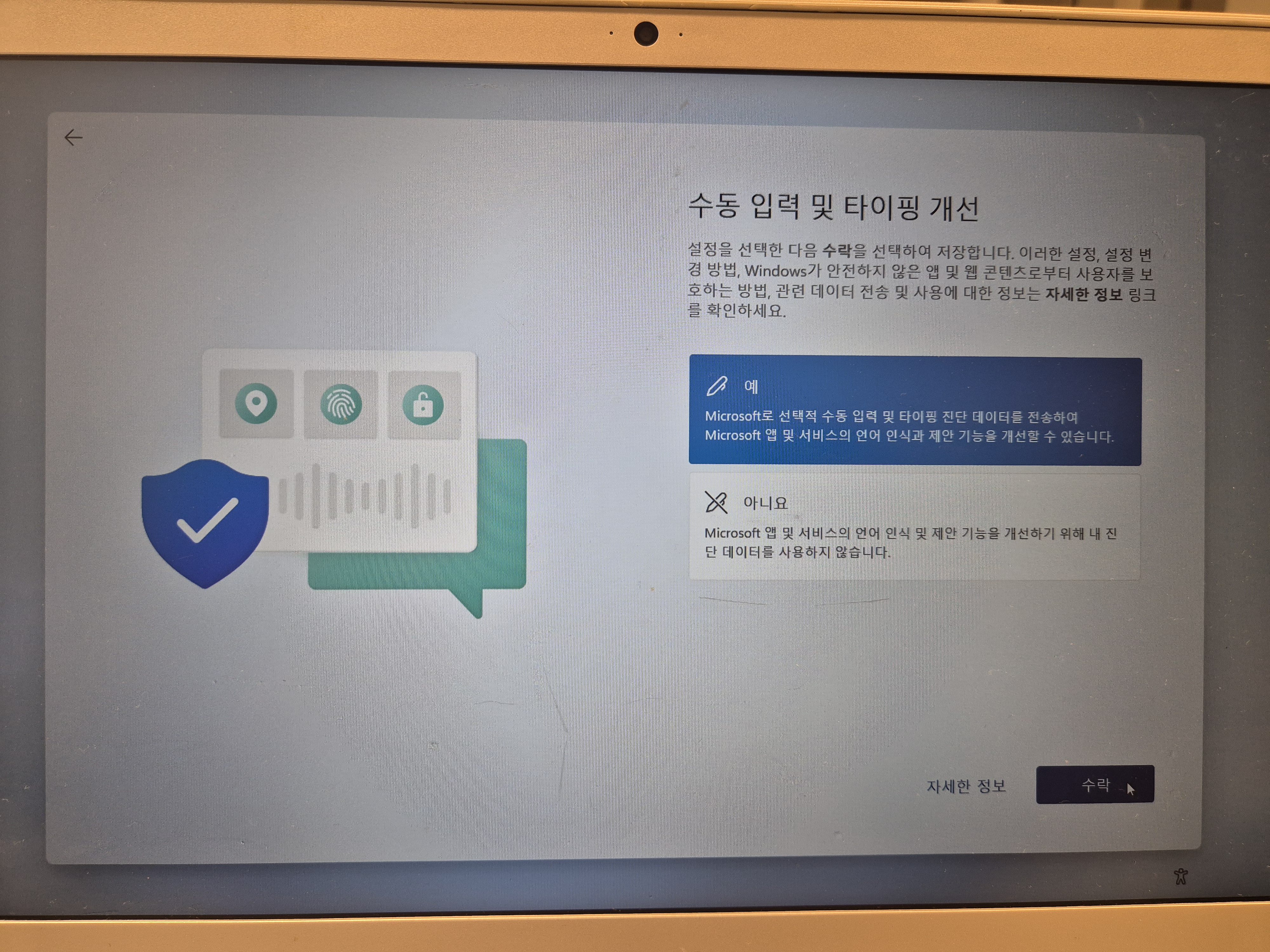 - Windows에서 개인 설정된 제안 받기 → 수락
