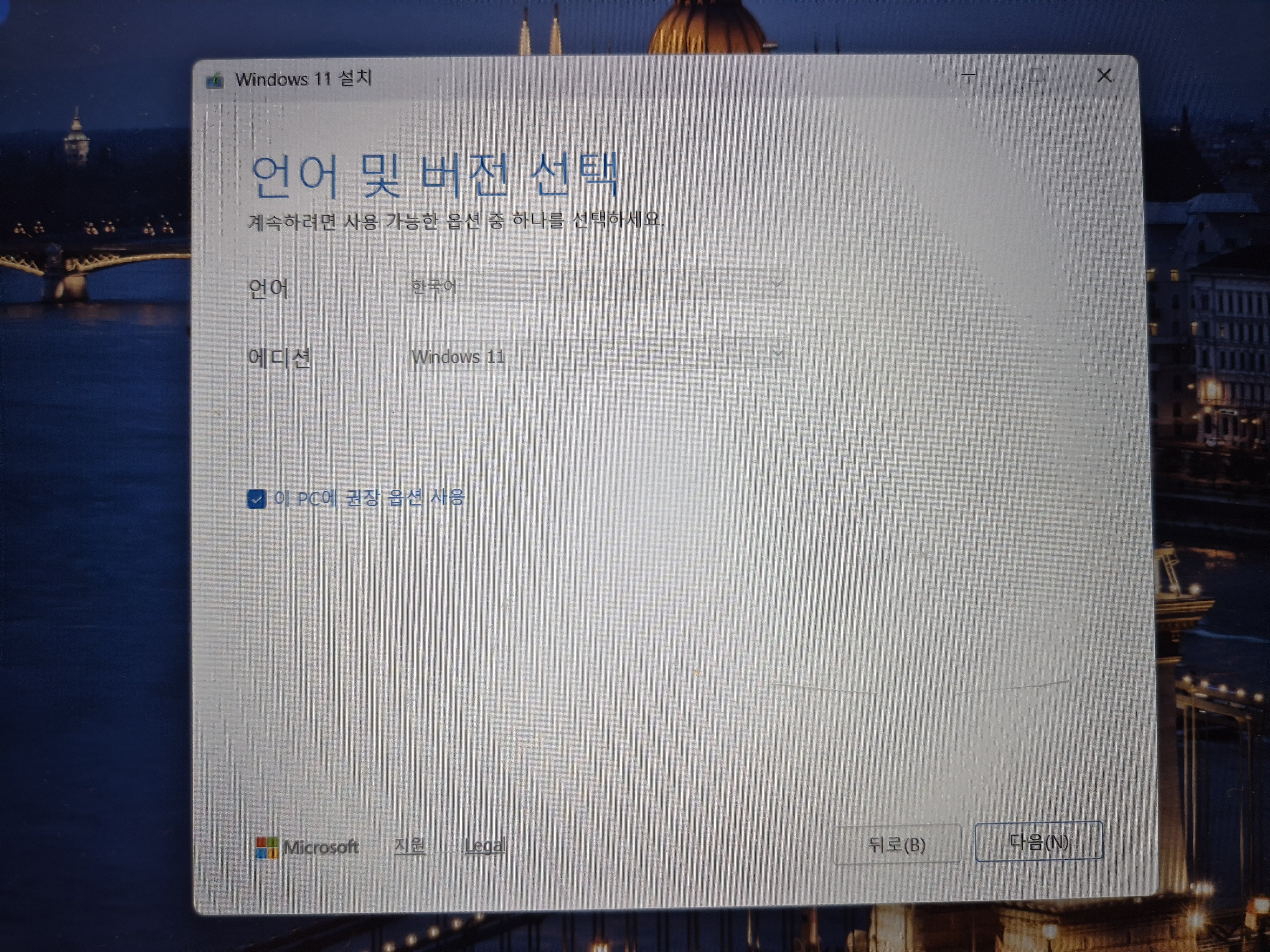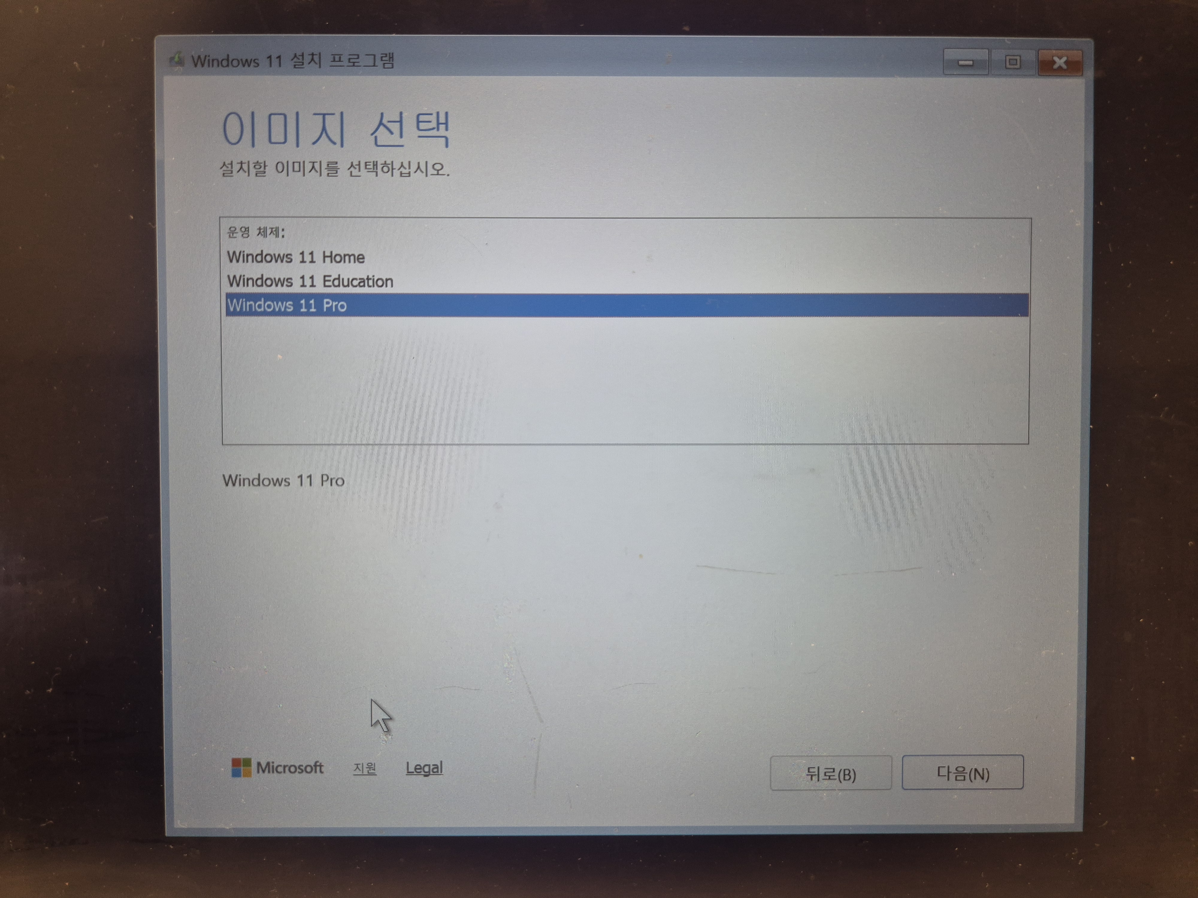 기존이 Windows 10 Pro였다면 Windows 11 Pro 선택
