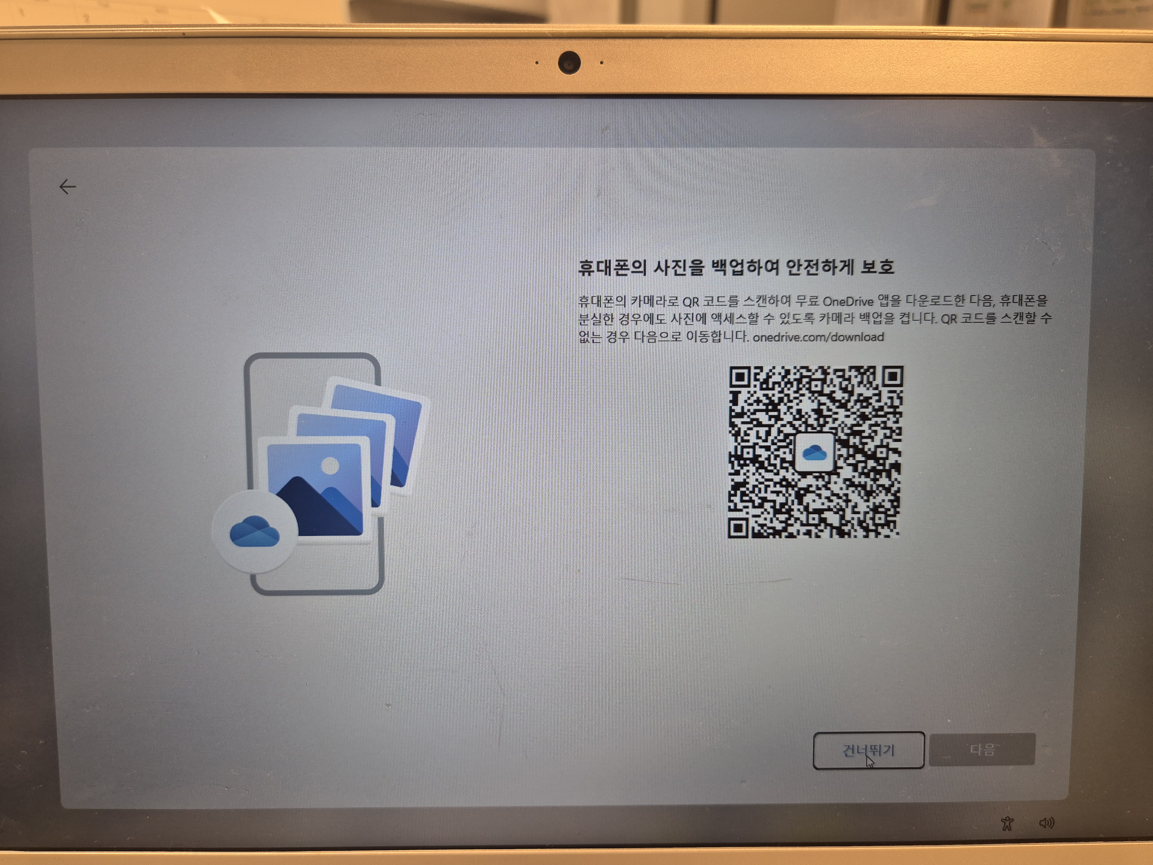 - 휴대폰 사진 백업 → 건너뛰기