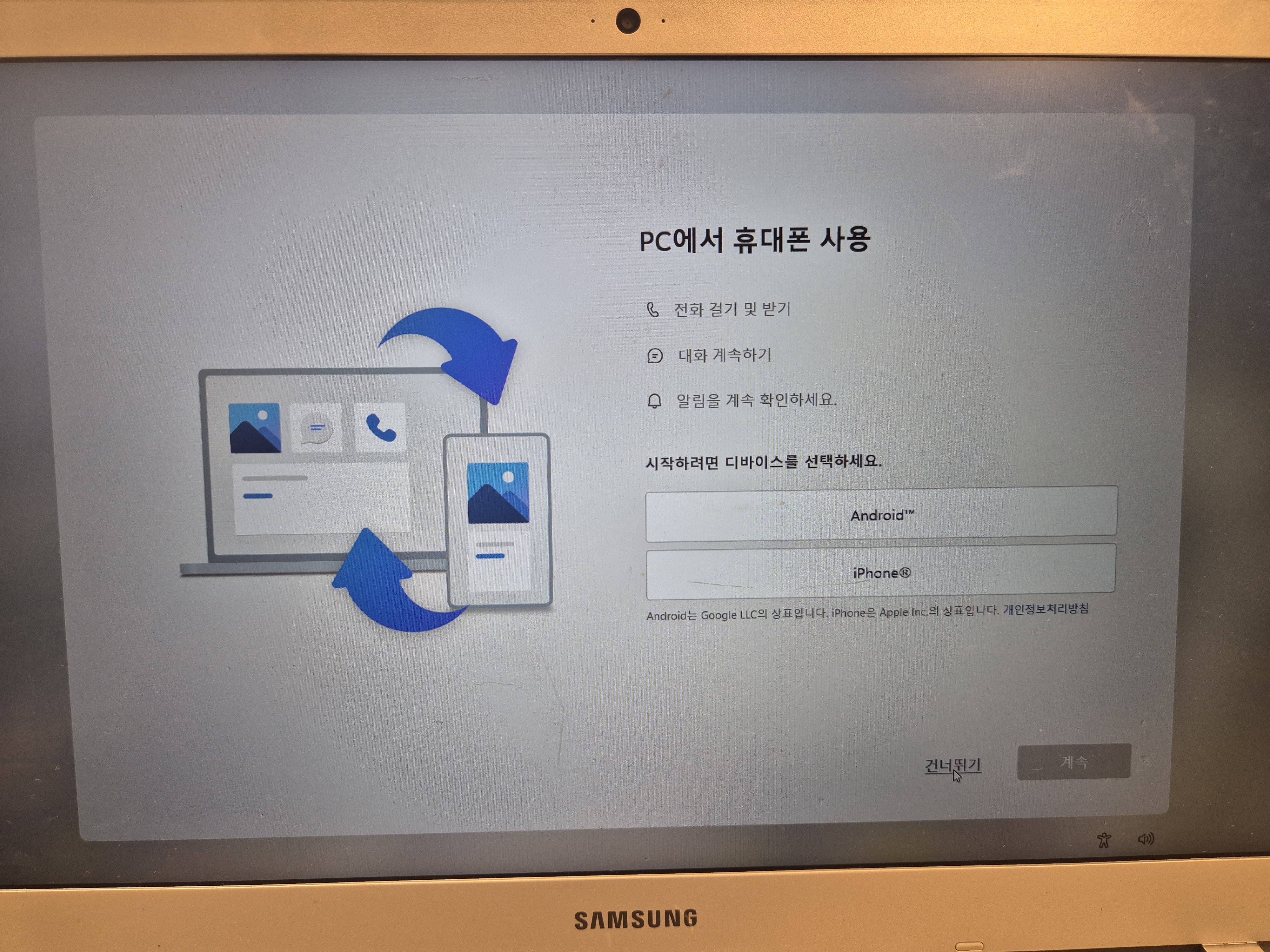 - PC/휴대폰 연동 → 건너뛰기